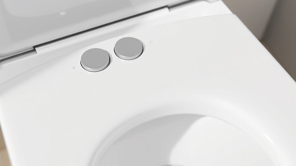 Maintenance might make you mindful of dual-flush models. You’ll need to regularly clean the tank to prevent buildup and guarantee smooth operation. Seal replacement is vital when leaks or noises occur, and it’s necessary to keep seals sealed tightly. These tasks are simple but essential for ideal performance. With proper maintenance, you’ll enjoy efficient flushing and water savings, keeping your toilet functioning flawlessly and your bathroom bustling without fuss.