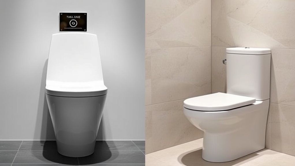 Ultimately, choosing between a one-piece and two-piece toilet comes down to your needs and style. Think of it like a blank canvas—each option offers its own advantages, shaping your bathroom’s look and function. Remember, the right choice can transform your space from ordinary to extraordinary. So, weigh your priorities, visualize your ideal bathroom, and make a decision that feels right. After all, your bathroom deserves a touch of perfection—don’t settle for anything less.