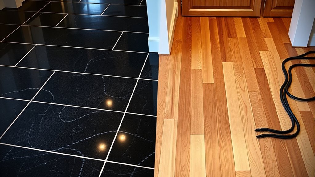 Choosing between electric and hydronic heated flooring depends on your project size and budget. Electric systems are simple to install, ideal for small spaces and quick upgrades, but can increase operating costs over time. Hydronic systems are more complex and costly upfront but offer better energy efficiency for larger areas and long-term use. To find the perfect fit for your home and needs, exploring details about installation, costs, and long-term benefits can help make an informed decision.