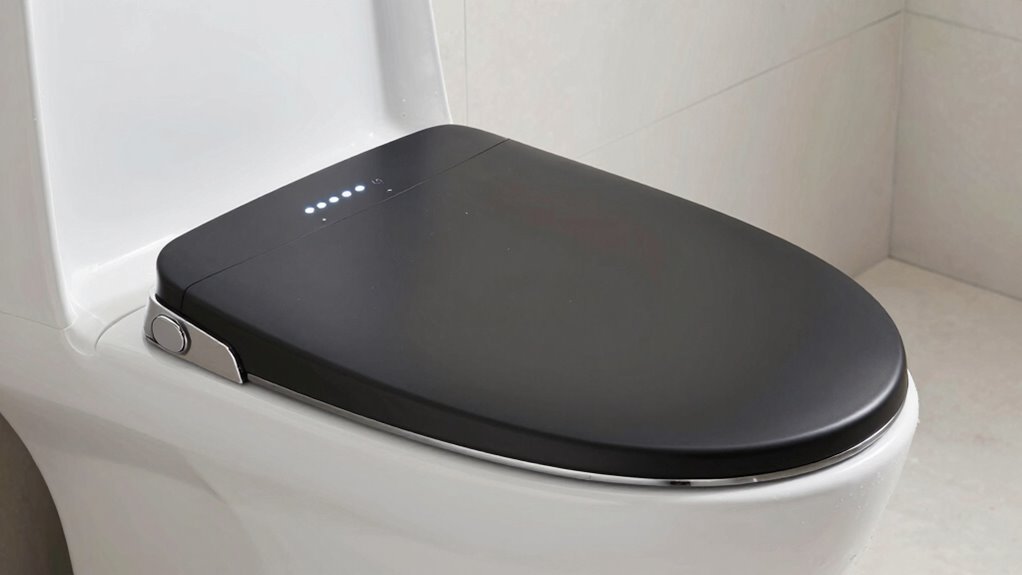 When selecting a bidet seat for areas with hard water, understanding the different technology types is essential, as each has distinct maintenance needs and performance features. Mechanical bidets are simple, relying on manual controls and lacking adjustable features or heated water options. They’re low-cost but may require more frequent cleaning due to mineral buildup. Electric bidets offer more customization, with adjustable water temperature, pressure, and spray patterns, thanks to electronic controls. However, their advanced features can mean more maintenance, especially in hard water conditions. Non-electric bidets operate without electricity, using pressure or gravity for cleansing. While they’re easy to maintain and energy-efficient, they may lack some comfort features. Your choice impacts water usage, upkeep, and how well the device performs with hard water.