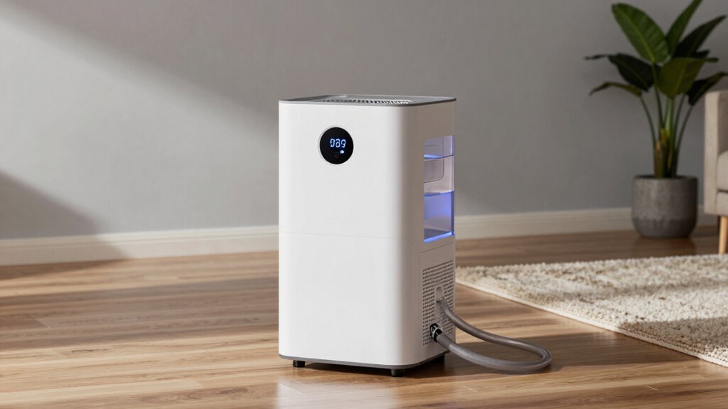 If you’re searching for the 15 best dehumidifiers with continuous drain in 2026, I’ve got you covered. I’ve considered models with large coverage, smart controls, and easy drainage options to keep your spaces comfortable without constant maintenance. From compact units to powerful models for basements, these choices guarantee reliable moisture control. Keep going, and you’ll find all the details you need to pick the perfect dehumidifier to suit your needs.
