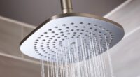 Dual-flush retrofit kits are an effective way to cut water usage and lower utility bills, often saving up to 45% of water per flush. They achieve this by offering two flush options—half and full—so you can choose the appropriate amount of water for each waste type. Many kits allow you to adjust water levels, helping you customize water consumption and prevent over-flushing. This flexibility guarantees efficient use during every flush cycle, reducing waste and conserving resources. Because they’re compatible with existing toilets and easy to install, these kits make water savings accessible without the need for a full toilet replacement. Proper calibration is key to maximizing water efficiency, preventing leaks, and ensuring each flush is as environmentally friendly and cost-effective as possible.