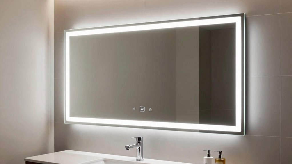 LED bathroom mirrors are remarkably more energy-efficient than traditional lighting. I’ve noticed they use up to 75% less energy, which helps me save on my electricity bill. Plus, LEDs last much longer—often around 25,000 hours—so I don’t have to replace bulbs frequently. They provide bright, even illumination without wasting power, making them a smart, eco-friendly choice for any bathroom.