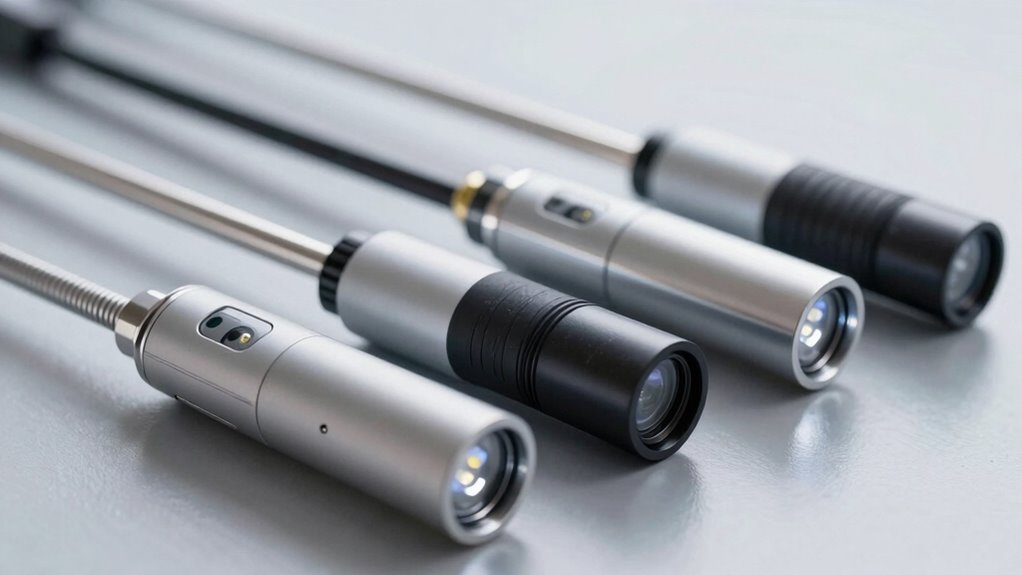 Incorporating additional inspection tools like magnets, hooks, mirrors, and protective caps can considerably boost a plumbing endoscope‘s versatility, making it easier to navigate complex or tight spaces. These accessories help retrieve small objects, explore hard-to-reach areas, and provide multiple viewing angles for thorough inspections. Side mirrors and extension hooks improve visibility in confined spots, while protective caps shield the camera lens from debris and damage during tough jobs. Proper storage in designated compartments or grooves guarantees these tools are always accessible and prevents loss. Compatibility with your specific endoscope model is essential, as not all accessories fit every device. Choosing a model with versatile, easy-to-use tools enhances your inspection efficiency and overall effectiveness.