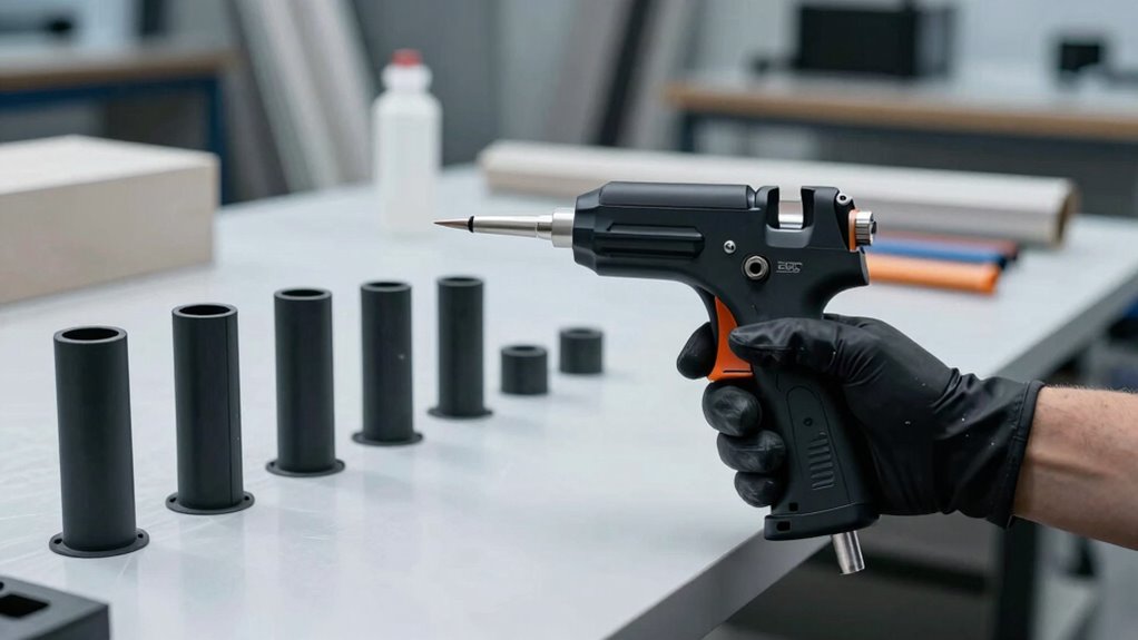 Did you know that professionals often select their guns based on the sealant’s viscosity? I look at the nozzle size, trigger mechanism, and whether the gun offers adjustable flow control. I also consider the gun’s weight for comfort during long jobs. Ultimately, I match the gun’s features to the sealant’s properties, ensuring smooth application and minimal waste. This approach guarantees a clean, professional finish every time.