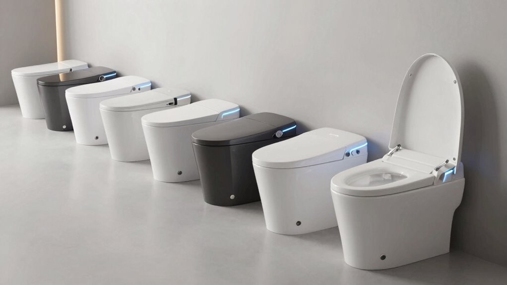 Honestly, these smart toilets are so energy-efficient, they probably run on fairy dust. They use minimal water and power thanks to advanced sensors and eco-friendly features, making them a guilt-free upgrade. I love how they conserve resources while offering high-tech comfort. So, if you’re worried about your carbon footprint, rest assured—these toilets are practically doing the planet a favor, one flush at a time.