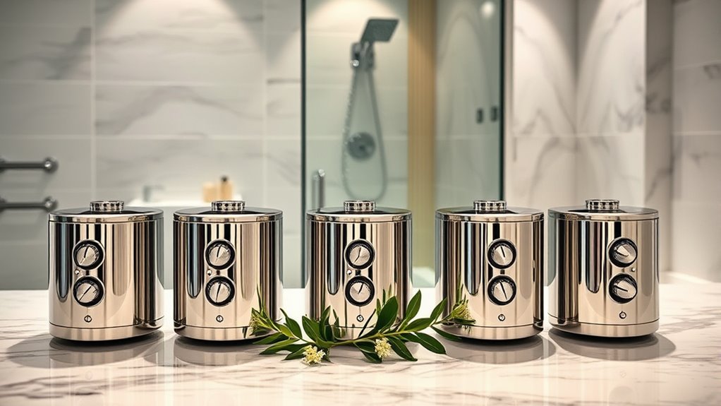 Understanding compatibility with accessories is essential for getting the most out of your steam shower generator. First, I always guarantee the steam generator’s outlet diameter matches the size of my steam head and other accessories for a proper connection. Then, I check if the digital control panel works with features like aromatherapy diffusers or remote controls. It’s also vital to confirm that the generator supports the same voltage and wiring requirements as my existing accessories. I make sure the mounting options align with the generator’s design, whether it’s wall-mounted or integrated. Finally, I verify that the generator can accommodate additional accessories, such as steam speakers or lighting, to ensure everything functions seamlessly together.