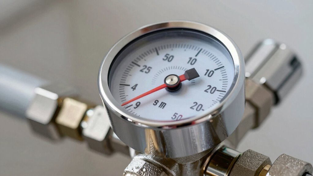 Have you ever wondered if your water pressure regulator can handle the maximum pressure in your system? Ensuring the regulator’s pressure range covers your system’s highest water pressure is essential to prevent under- or over-pressurization. Most RV and household regulators have adjustable settings from 0 to 160 PSI, so choose one that matches your specific needs. Additionally, verify that the gauge can accurately measure within your required range, such as 0-200 PSI, to monitor performance effectively. Dual-scale gauges displaying PSI and kPa add versatility and precision. It’s also wise to select a regulator with a preset pressure close to your typical operating level, reducing adjustments and enhancing safety. Proper pressure range compatibility is key to reliable, safe water system operation.