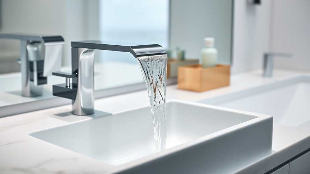 Choosing the perfect waterfall bathroom faucet is like finding the key to a hidden treasure—once you pick the right one, your bathroom transforms into a luxurious retreat. Whether you prefer sleek matte black, warm oil-rubbed bronze, or bold finishes, there’s a faucet here to match your style. Just remember, the right choice blends form and function seamlessly, turning everyday routines into indulgent moments. So go ahead, make your bathroom a true oasis!