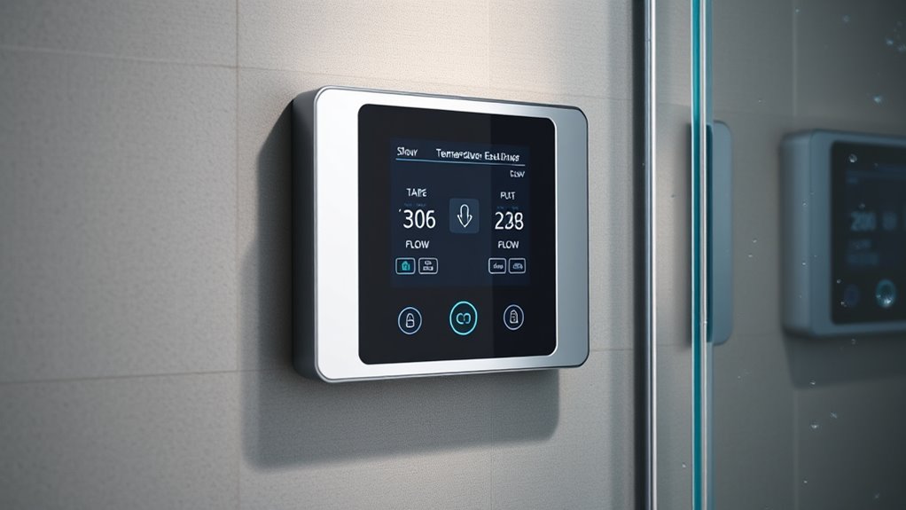 Beyond convenience, digital shower controls also promote water conservation. Using precise digital measurements, these systems help you reduce water waste by allowing you to set maximum flow limits or program specific shower times. Some models even include eco modes that automatically lower water flow without compromising your comfort. This feature is especially helpful if you’re looking to cut down on water bills or contribute to environmental sustainability. By integrating with your smart home, these controls can be monitored remotely, giving you insights into your water usage patterns. This way, you can identify and eliminate unnecessary wastage, making your daily routine more eco-friendly.