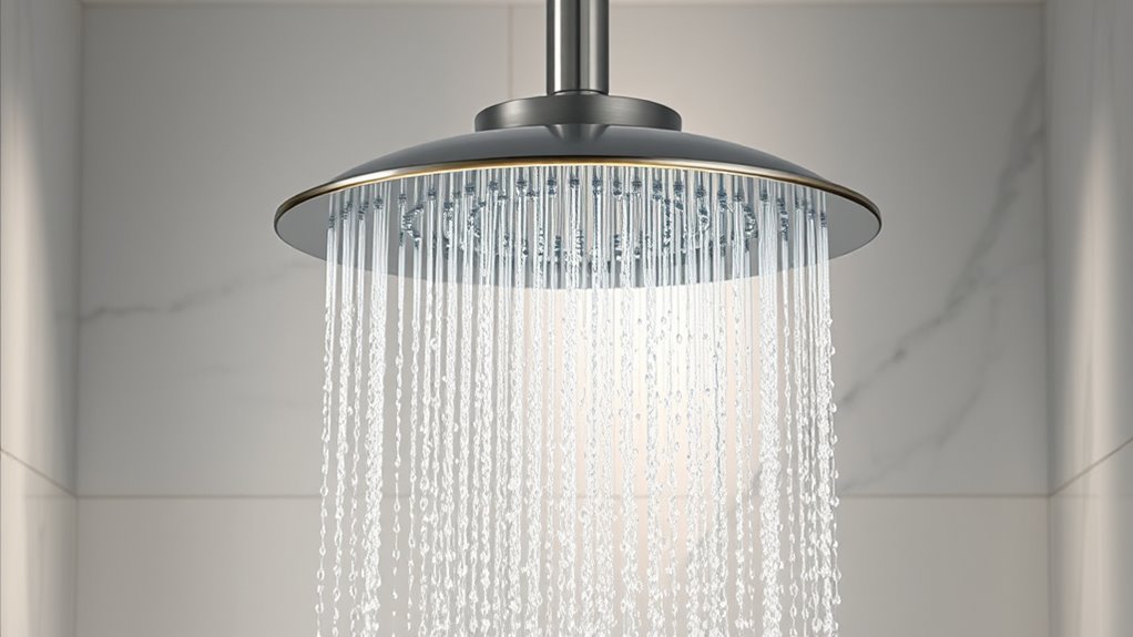 As homeowners seek to elevate their bathroom experience, rainfall showerheads are emerging as a top trend for 2025. These fixtures transform your daily routine into a spa-like retreat, offering a gentle, enveloping flow of water that mimics the soothing sensation of natural rainfall. When exploring the latest options, you’ll notice a focus on luxury designs that blend aesthetic appeal with functionality. These high-end models often feature sleek finishes, minimalist shapes, and customizable options that allow you to tailor your shower experience precisely to your preferences. Whether you prefer a modern, minimalist look or something more opulent, the variety of luxury designs ensures you’ll find a rainfall showerhead that complements your bathroom decor perfectly.