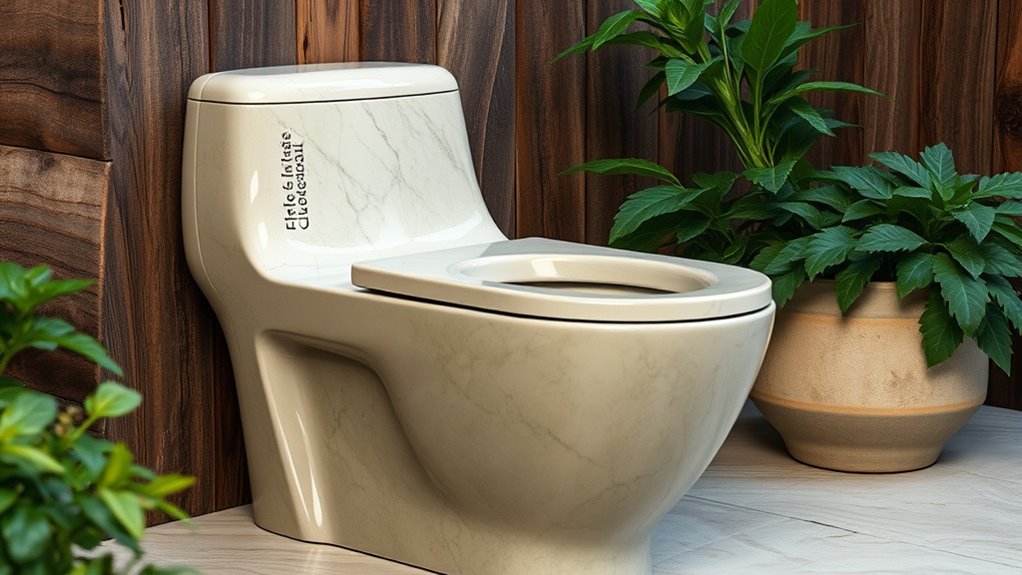 Recycled ceramic and plastic toilet components are quite durable, thanks to their material longevity. The recycling processes used enhance their strength and resistance to wear, ensuring they withstand daily use. You’ll find that recycled ceramics are particularly resilient, maintaining their integrity over time, while recycled plastics are engineered for impact resistance and longevity. Overall, these materials offer a sustainable, long-lasting option that doesn’t compromise performance or durability.
