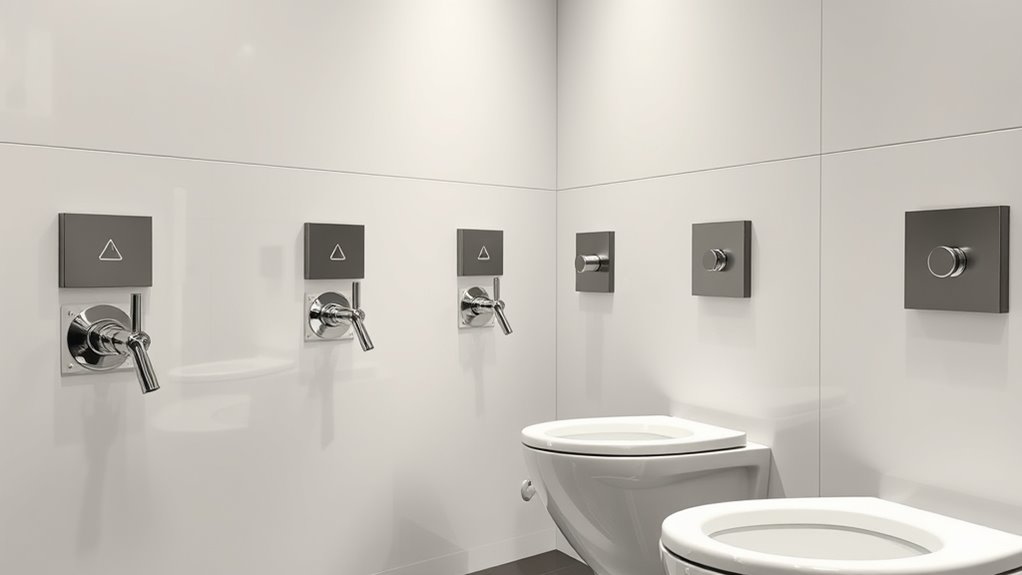You’ll want to regularly inspect your flushometer system to guarantee it functions properly. Clean the sensors and flush valves to prevent buildup, which can affect water conservation efforts. Check for leaks and tighten fittings to prevent vandalism or misuse. Replacing worn parts promptly keeps the system efficient and helps conserve water. Routine maintenance not only prolongs the system’s lifespan but also supports vandalism prevention and sustainable water use.