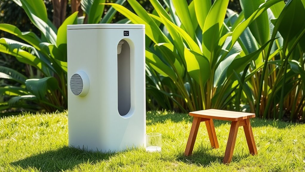 You’ll need to regularly check and empty the compost chamber to prevent overflow. For maintenance, inspect the biological treatment process, ensuring the composting material remains effective and materials stay durable. A case study from a rural community shows that routine monitoring and adding carbon-rich material help maintain odor control and system efficiency. Keep the ventilation system clean and functioning, and replace worn-out parts promptly for reliable operation.